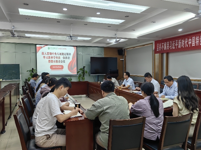会议传达了学校深入贯彻中央八项规定精神学习教育学查改一体推进会暨警示教育大会精神,要求全院上下切实提高政治站位,认真贯彻落实中央、省委和学校党委的部署要求。