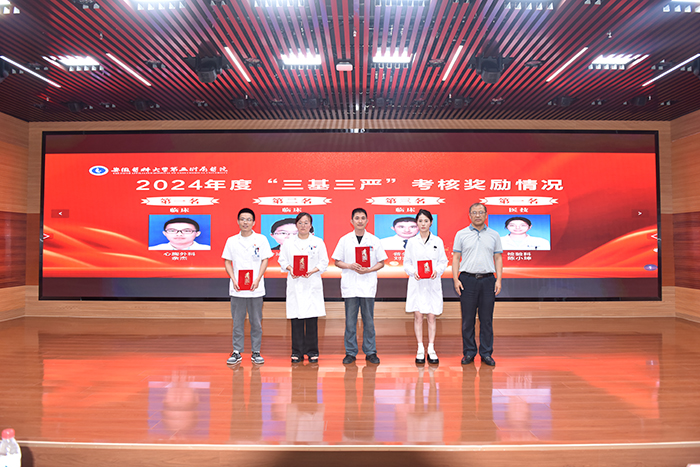 副院长冯小军主持会议,并宣读表彰决定,涵盖2024年度优秀感控科室、感控工作者,2024年下半年“优秀门诊病历”、“优秀病历”,2025年“优秀医务人员”及2024年度“三基三严”考核获奖名单。参会领导为获奖集体和个人颁奖。
